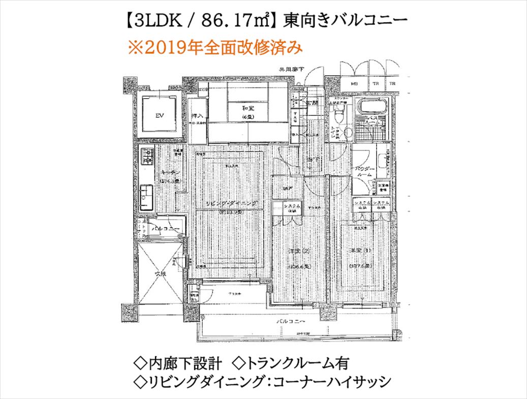 注目: 仁王門通りと神宮通りの交差点の南、神宮通面しに建つマンション「グランドヒルズ岡崎神宮道」の2階、専有面積86.17㎡、3LDKの間取りで東向きバルコニーのお部屋です。2019年に全面改修済。 近くには平安神宮や京都国立近代美術館をはじめ京都市動物園や琵琶湖疎水など京都に住んでいても何度も訪れたくなる観光名所がいっぱいある素敵なエリアにあるマンションです。