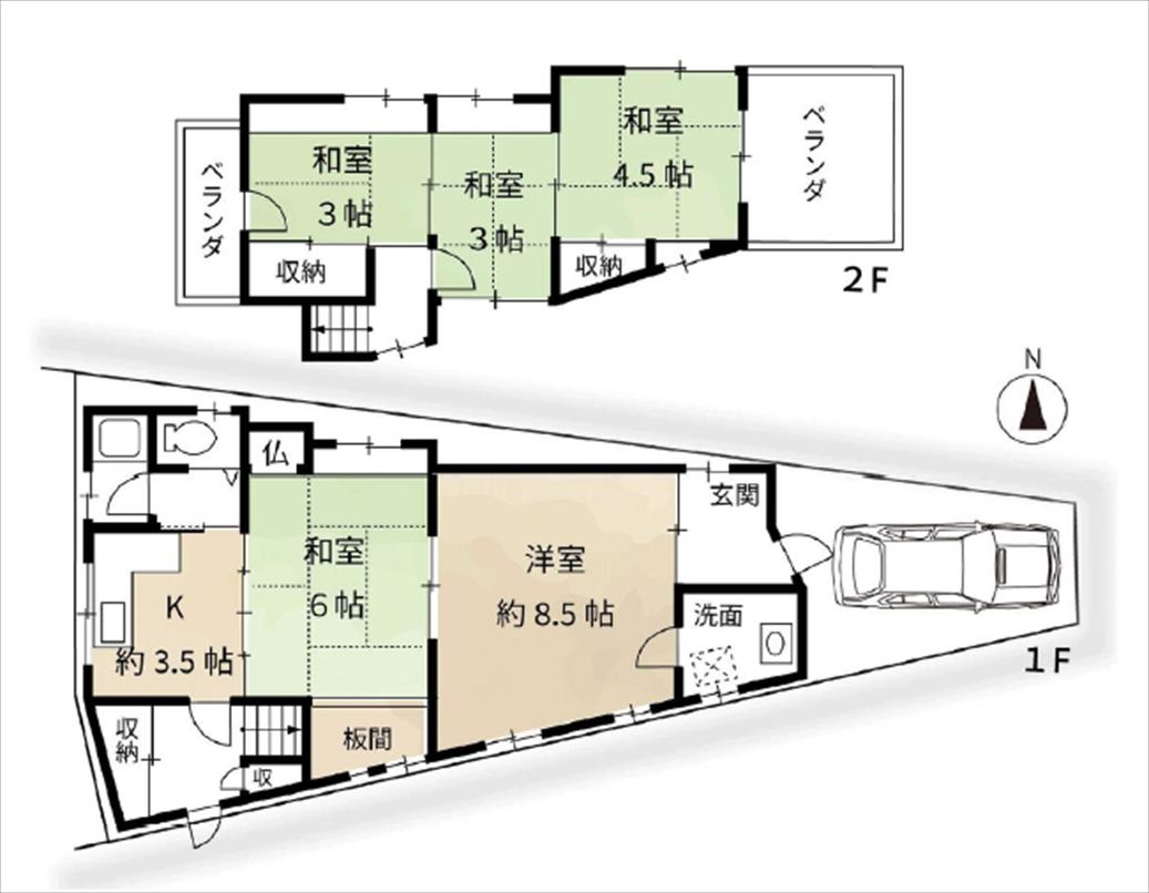 注目: 平野神社の東、北野天満宮の北に立地する地下1階、地上2階と小屋裏収納のあるお家です。 平成9年建築の3SLDKで全居室8帖以上とゆったりとしています。またキッチンもL字型壁面となっていますので13帖のダイニングキッチンも広く感じられます。 周辺施設は、生鮮館なかむら徒歩3分、コープ衣笠徒歩6分、イズミヤ徒歩8分、ドラッグひかり徒歩6分、ファッションセンタしまむら徒歩6分、セブンイレブン徒歩7分、郵便局徒歩7分と、とても充実しています。 即入居可能です。
